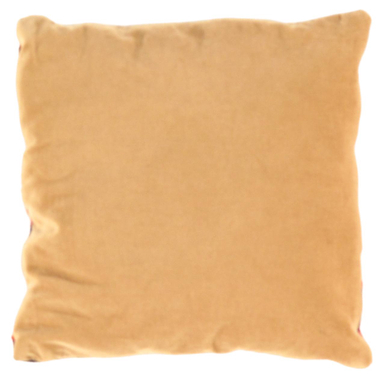 This pillow features a hidden zipper closure with neutral fabric backing.