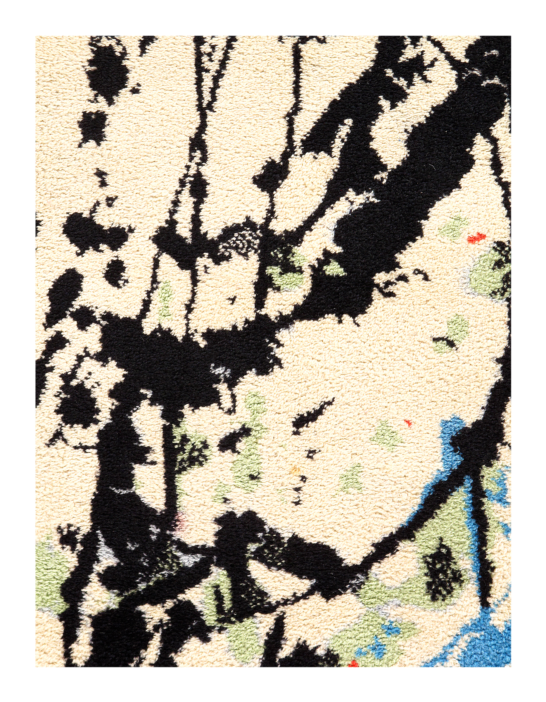 This modern contemporary design rug embodies the spirit of the abstract movement that was popular during the post World War II era. It uses bold contrasting colors and a combination of both broad and delicate paint like designs. The designs are reminiscent of brush strokes that were made using a heavily loaded brush and allowing the paint to drip from the end. This fascinating art work adaptation creates translates into a rug that is expressive and quite modern in its design. This artistic rug is a fine example of this unique abstract expressionist design process.