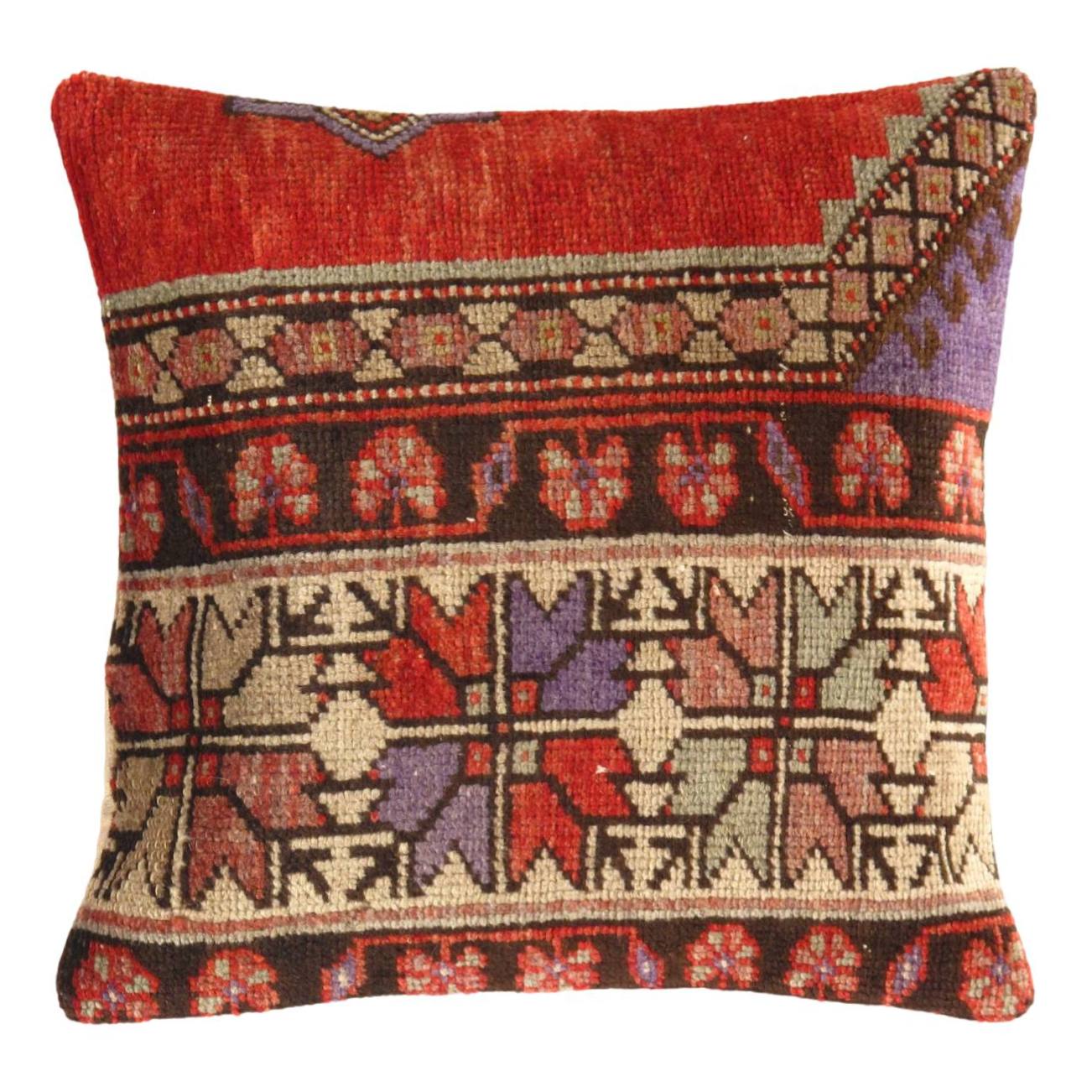 Offered is Vintage handwoven Turkish Oushak pillow. This is 100% wool. Back 100% cotton. Beautiful colors and well made. This pillow features a hidden zipper closure with neutral fabric backing.