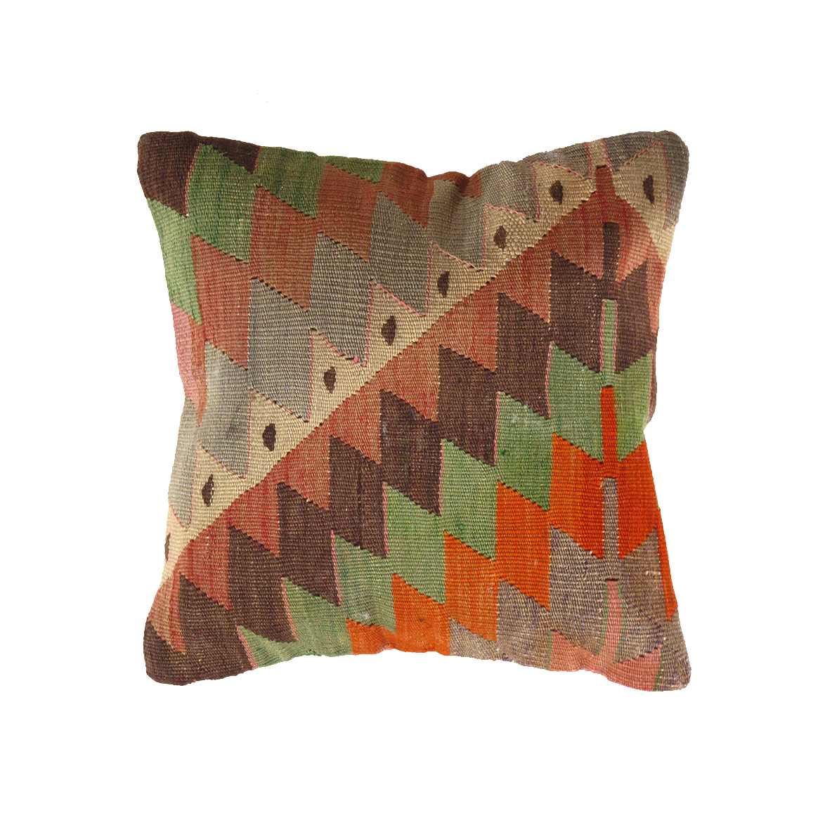 Offered is an antique handwoven Turkish Oushak pillow. This is 100% wool. Back 100% cotton. Beautiful colors and well made. This pillow features a hidden zipper closure with neutral fabric backing.
