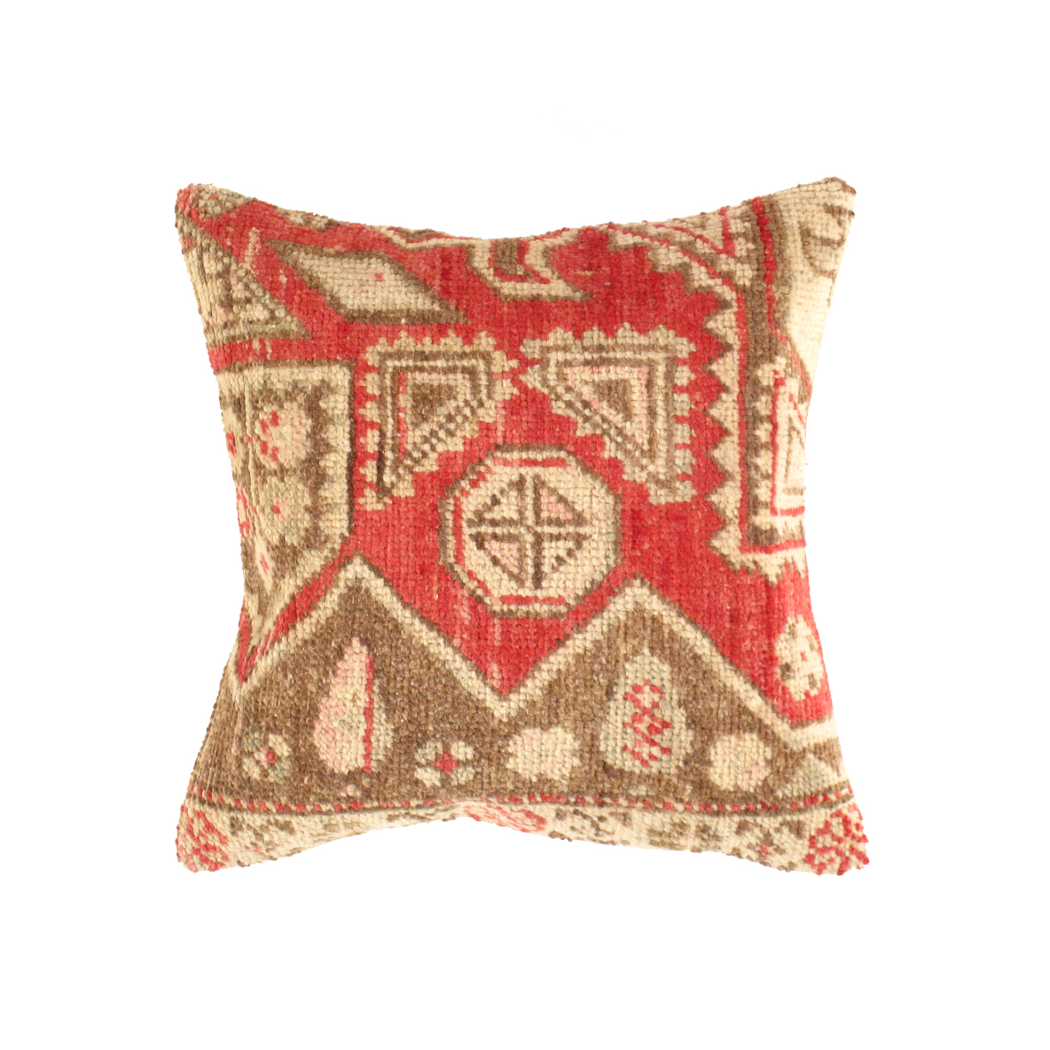 Offered is an antique handwoven Turkish Oushak pillow. This is 100% wool. Back 100% cotton. Beautiful colors and well made. This pillow features a hidden zipper closure with neutral fabric backing.