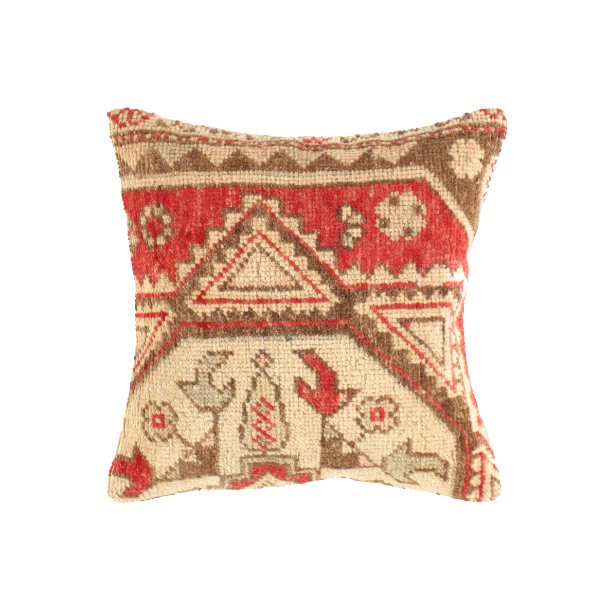 Offered is an antique handwoven Turkish Oushak pillow. This is 100% wool. Back 100% cotton. Beautiful colors and well made. This pillow features a hidden zipper closure with neutral fabric backing.