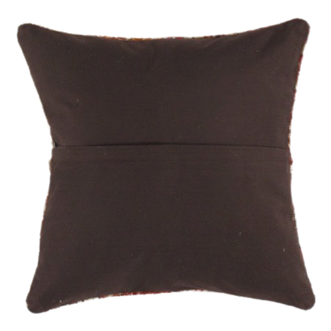 Vintage hand woven Turkish pillow. This is 100% wool. Back 100% cotton. Beautiful colors and well made. This pillow features a hidden zipper closure with neutral fabric backing.