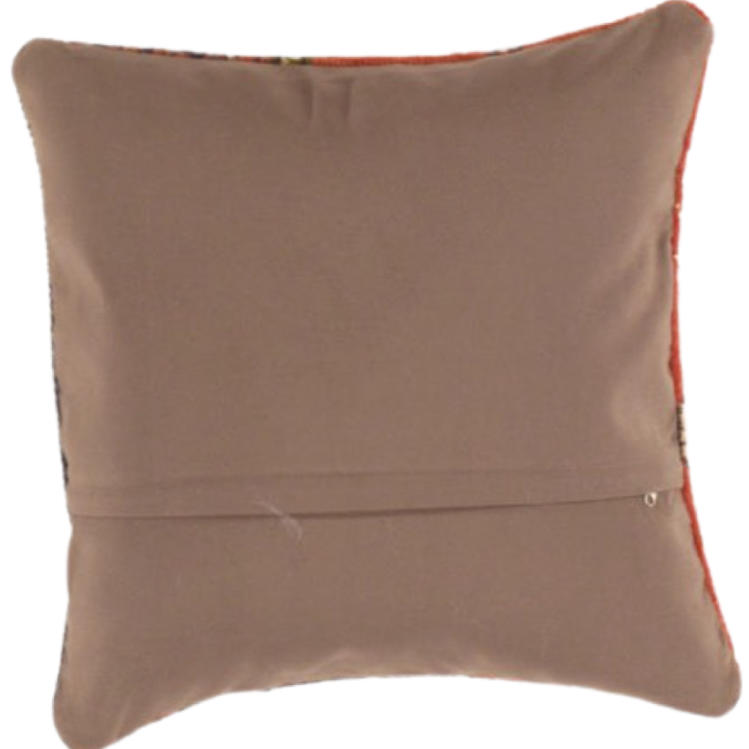 Vintage hand woven Turkish pillow. This is 100% wool. Back 100% cotton. Beautiful colors and well made. This pillow features a hidden zipper closure with neutral fabric backing.