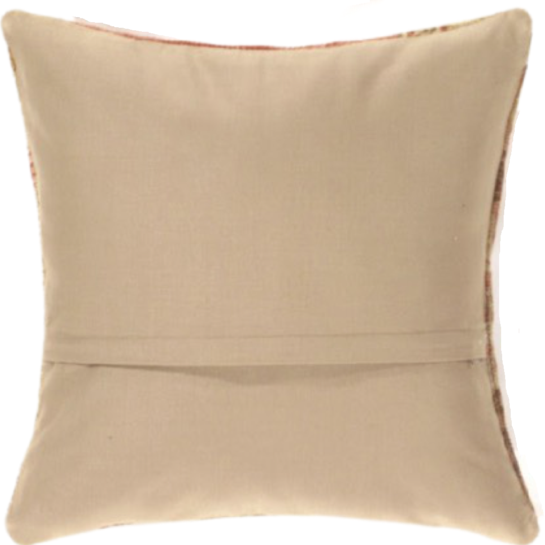 Vintage hand woven Turkish pillow. This is 100% wool. Back 100% cotton. Beautiful colors and well made. This pillow features a hidden zipper closure with neutral fabric backing.